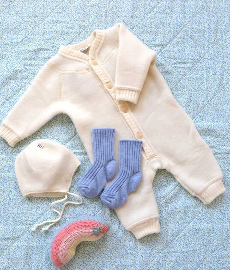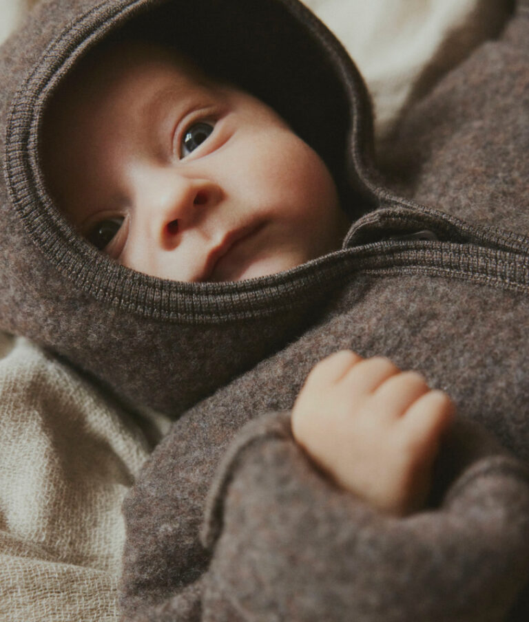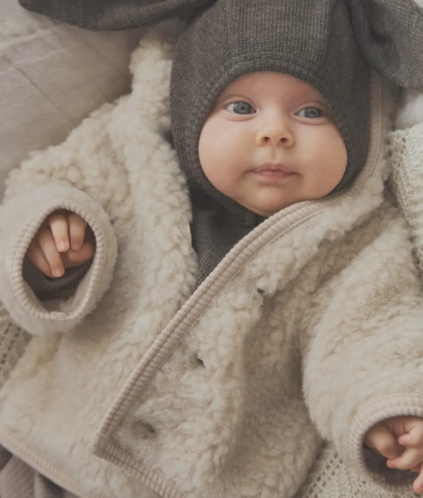 Ull hjelper den lille med å regulere kroppstemperaturen. Svaler når det er varmt ved å absorbere og transportere fukt bort fra kroppen. Isolerer og varmer når det er kaldt.