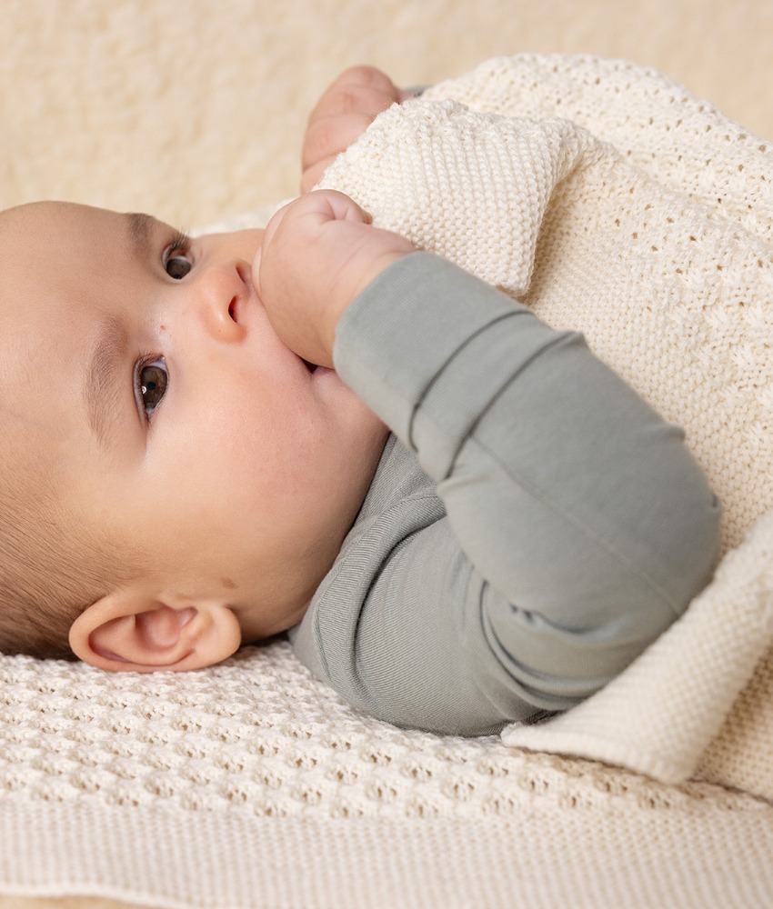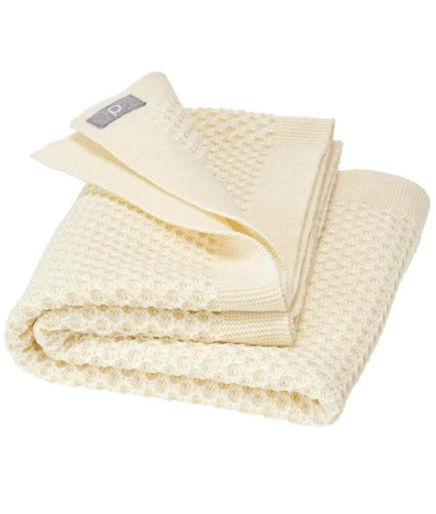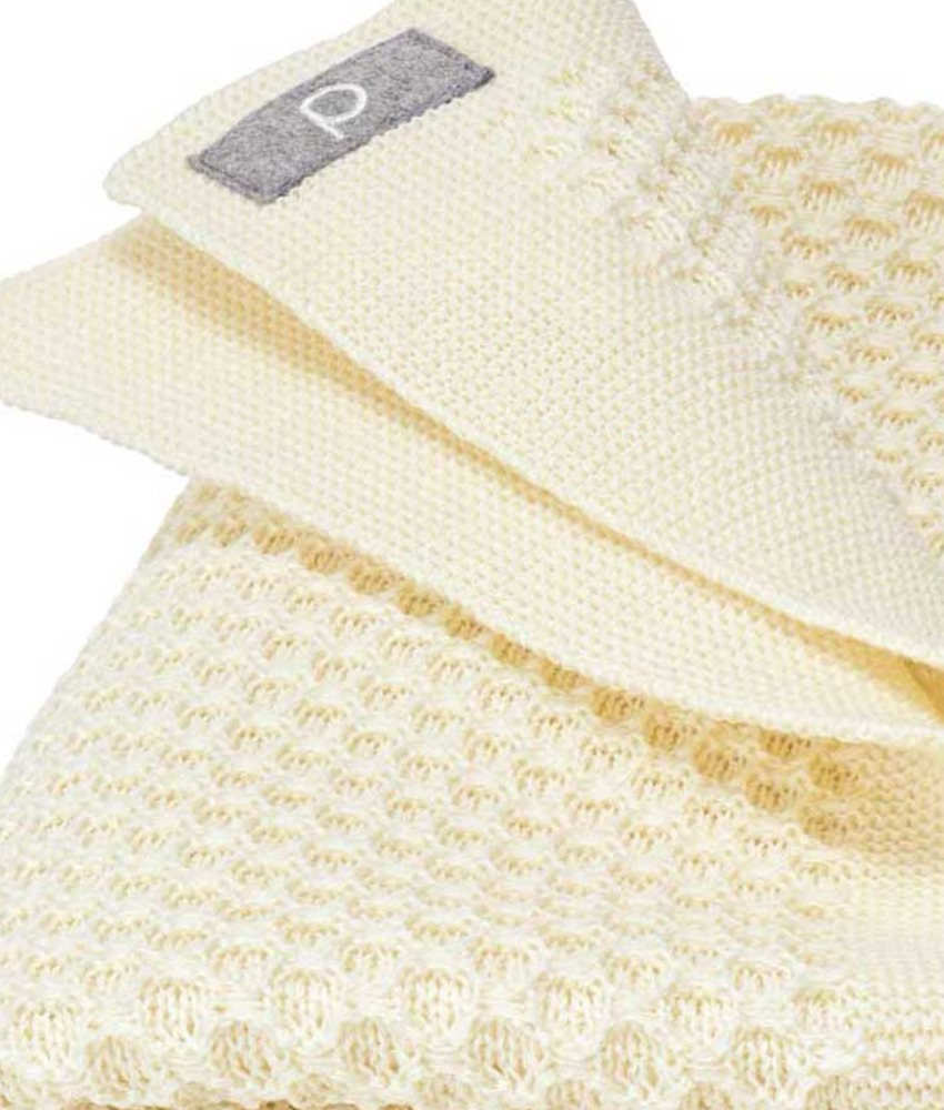 Nydelig og mykt babyteppe fra Disana strikket i 100% økologisk merinoull av fineste kvalitet i et klassisk honeycomb (honningkake) strikkemønster. Stort, deilig og mykt babyteppe som er utrolig anvendelig. Kan brukes både i vogn, bil, babyseng og som sengeteppe i barnesengen etter spedbarnsstadiet. Teppet måler ca 100×80 cm. Sertifisert med GOTS og NATURTEXTIL IVN BEST. Kan vaskes i maskin på 30 grader ullprogram med vaskemiddel for ull/silke.
