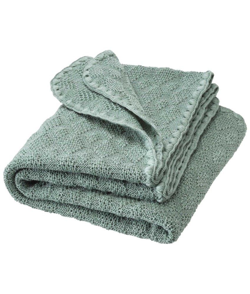 Nydelig og mykt babyteppe fra Disana strikket i 100% økologisk merinoull av fineste kvalitet. Et teppe det er godt å bli pakket inn i. Teppet måler 100×80 cm. Sertifisert med GOTS og NATURTEXTIL IVN BEST. Kan vaskes i maskin på 30 grader ullprogram med vaskemiddel for ull/silke.