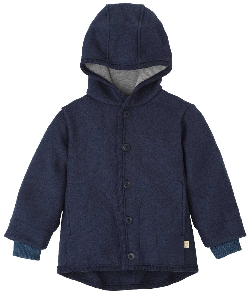 Disana jakke med knapper i 100% økologisk kokt merinoull Indigo