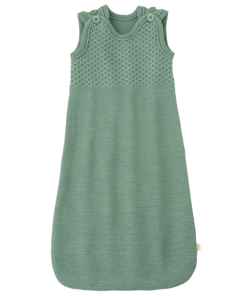Nydelig og myk nattpose uten ermer fra Disana strikket i 100% økologisk merinoull av fineste kvalitet. Klassisk honeycomb mønster på bolen og venstre-strikk som gjør den elastisk og god å bevege seg i. Nattposen åpnes med knapper av elfenbensnøtter på skuldrene. Nattposer til babyer sikrer at babyer som sparker av seg dynen om natten ikke fryser. Sertifisert med GOTS og NATURTEXTIL IVN BEST. Kan vaskes i maskin på 30 grader ullprogram med vaskemiddel for ull/silke.