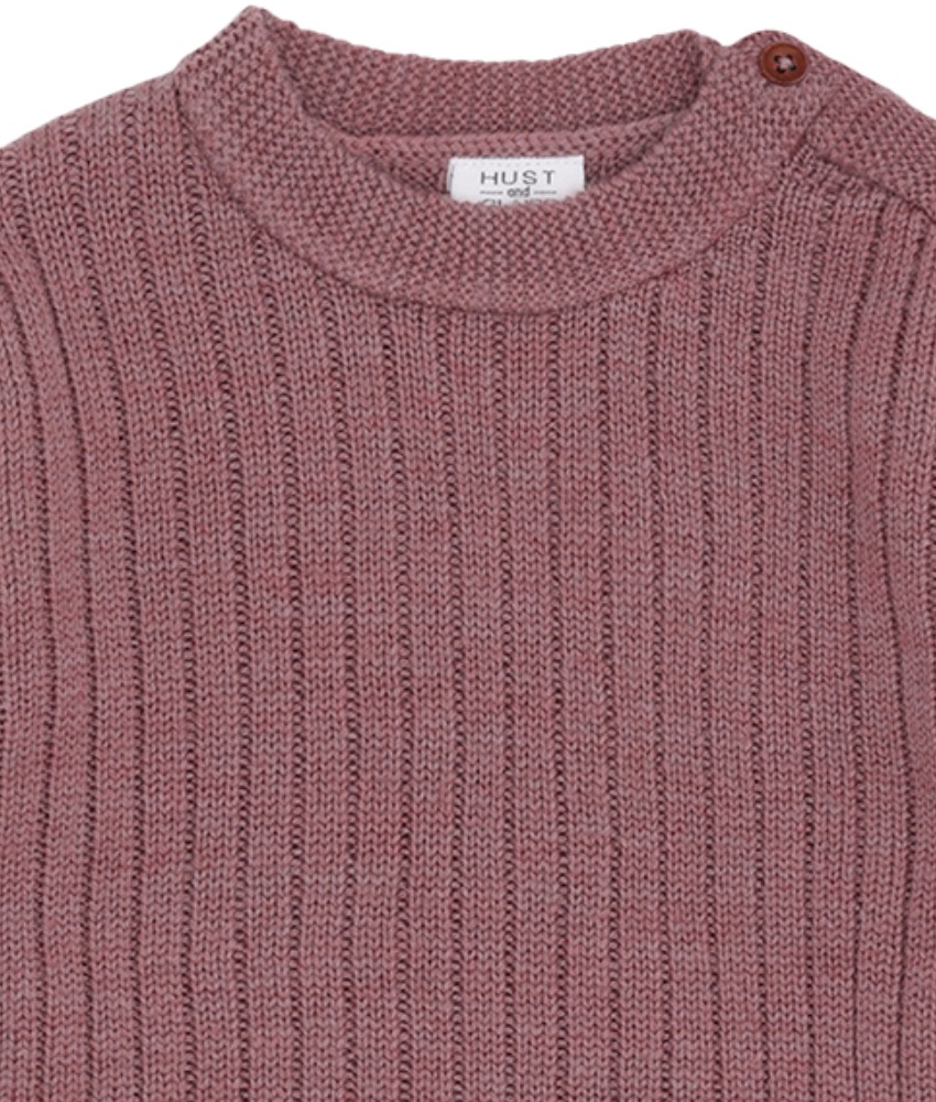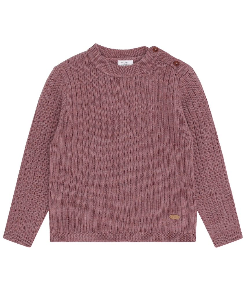 Varm og myk genser fra Hust&Claire i en myk ribb kvalitet strikket i 100% merinoull. Fine treknapper på skulderen. Supert som lag to og passer sammen med ribbebukse som et helt sett. Kan vaskes i maskin på 30 grader ullprogram med vaskemiddel for ull/silke.