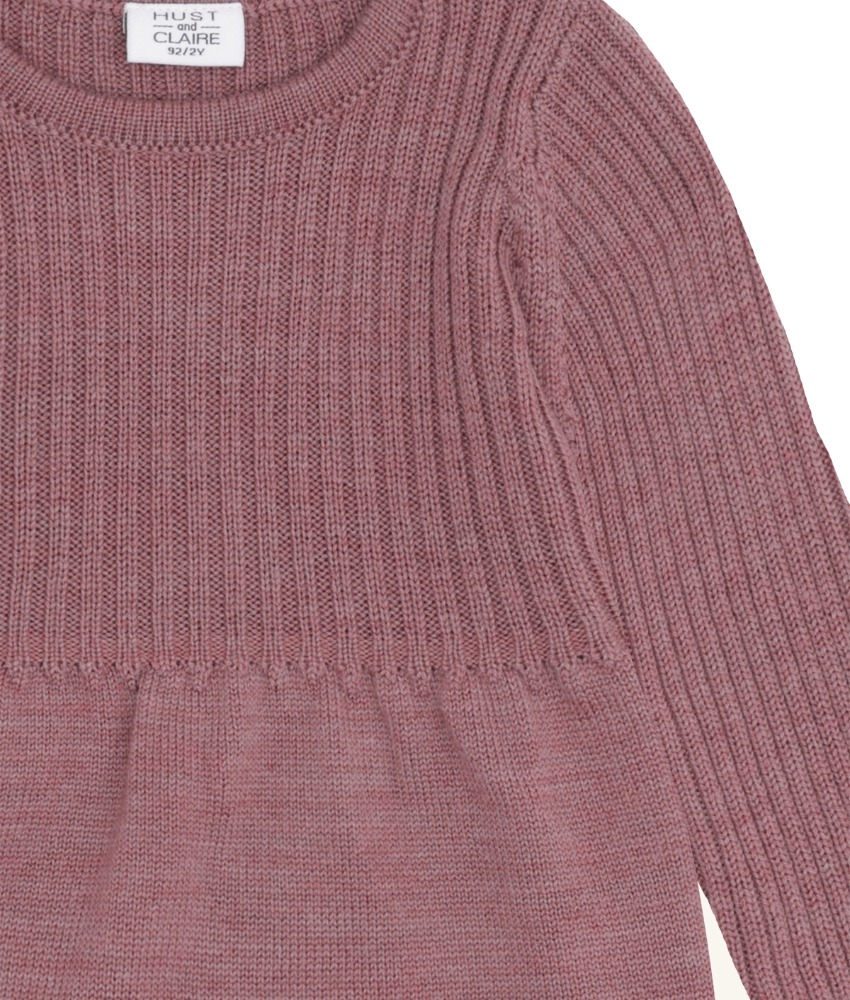 Nydelig og varm kjole fra Hust&Claire i 100% myk merinoull. Ribb på bolen og ermene. Passer både til hverdags og fint. Kan vaskes i maskin på 30 grader ullprogram med vaskemiddel for ull/silke.