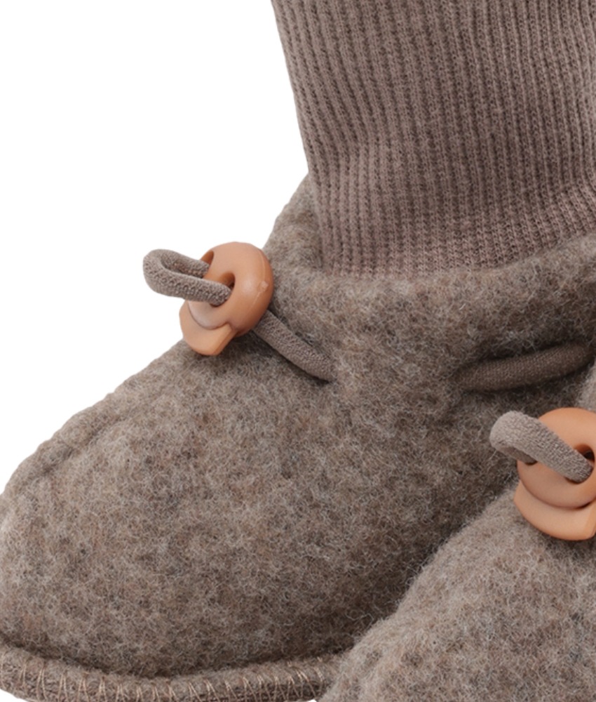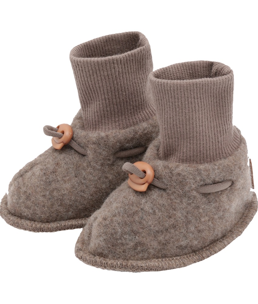 Varme babytøfler i myk ullfleece fra Hust&Claire. Babytøflene er laget av 100% ullfleece av merinoull på utsiden og de er foret med bomull. Det gjør de ekstra varme og vindtette. Ribbebånd i bomull som kan strammes gjør at de sitter godt på små føtter. Sertifisert med Standard 100 fra OEKO-TEX®.
