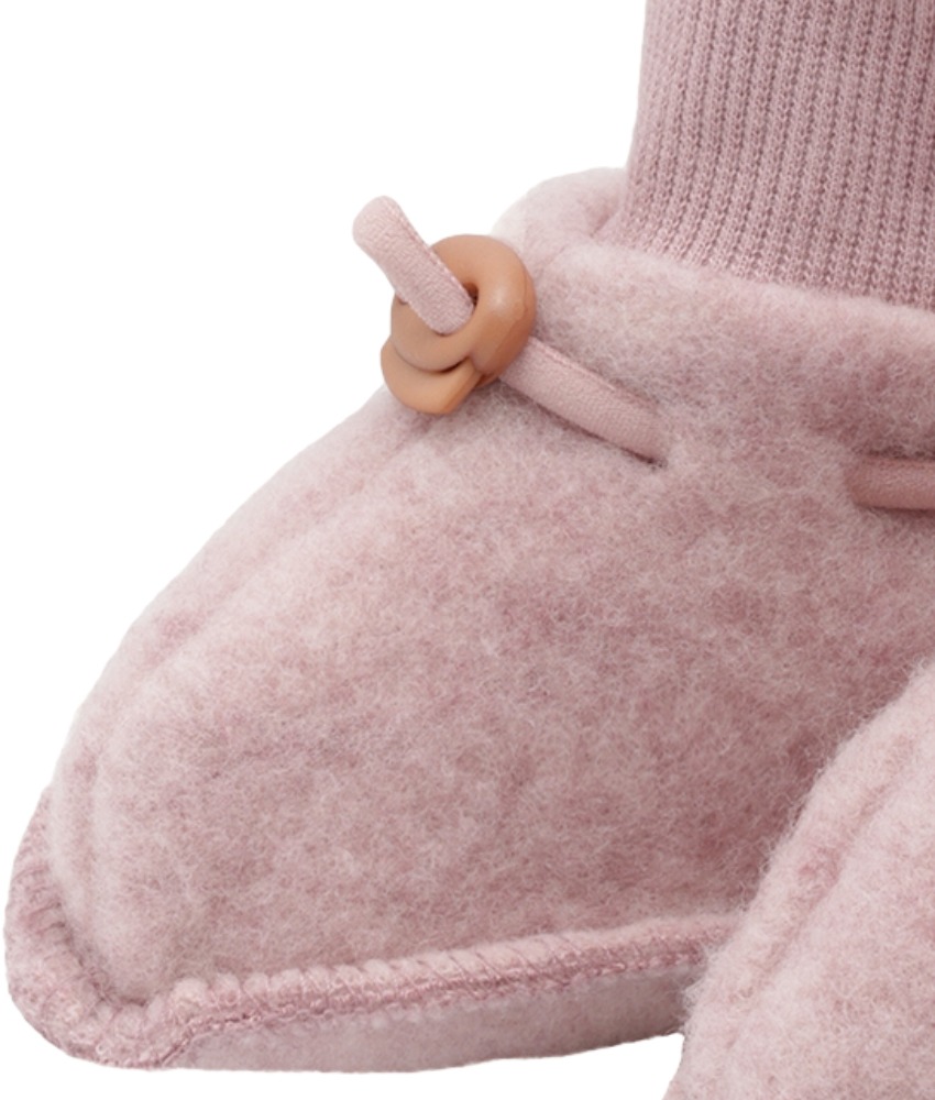 Varme babytøfler i myk ullfleece fra Hust&Claire. Babytøflene er laget av 100% ullfleece av merinoull på utsiden og de er foret med bomull. Det gjør de ekstra varme og vindtette. Ribbebånd i bomull som kan strammes gjør at de sitter godt på små føtter. Sertifisert med Standard 100 fra OEKO-TEX®.