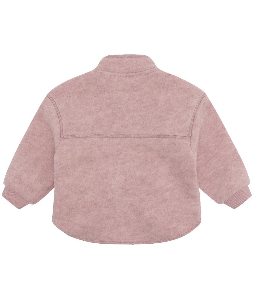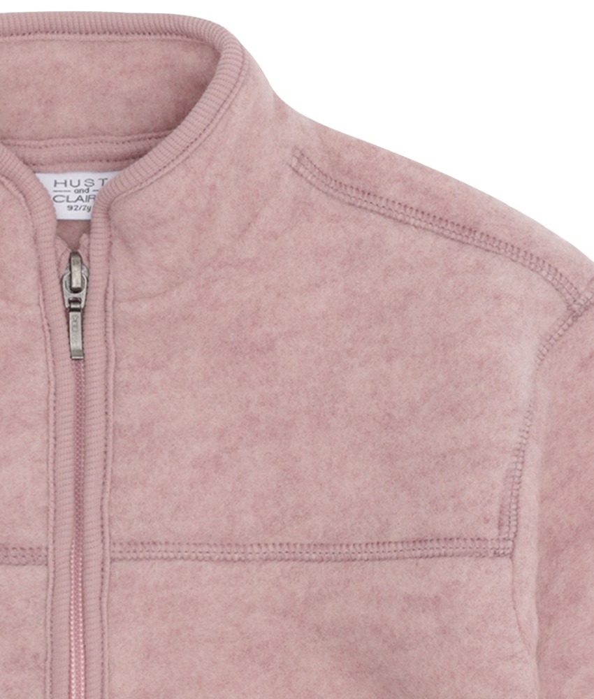 Superfin og praktisk ullfeece jakke med glidelås fra Hust&Claire i 100% merinoull. God hals som luner og søte lommer med sløyfe til små skatter. Sertifisert med Standard 100 fra OEKO-TEX®.