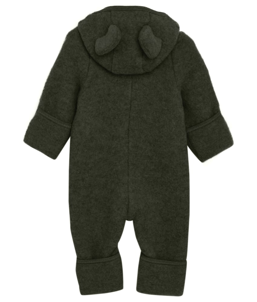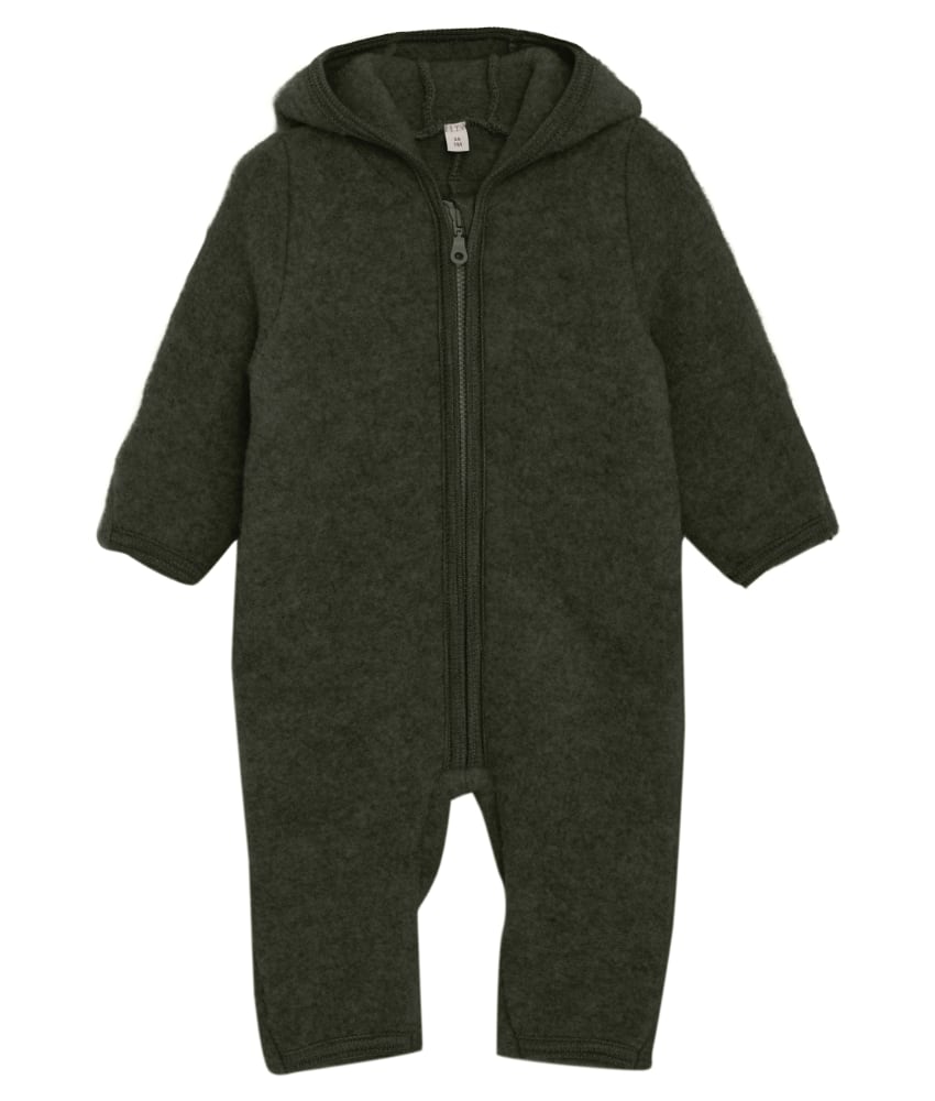 Smart og varm HUTTEliHUT dress i ullfleece. HUTTEliHUT dressen har en fast hette med en rund hodeform med små søte ører. Trylleføtter og ermer som kan brettes over opp til og med størrelse 74 cm for å holde små føtter og hender varme. Den har ribbekanter i alle åpninger. Den åpnes foran med en skjult glidelås med hakebeskyttelse. Laget av 100% merinoull. Kan vaskes på 30 grader ullprogram med vaskemiddel for ull/silke. Sertifisert med OEKO-TEX® Standard 100 & Woolmark Pure New Wool.