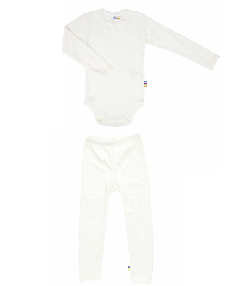 Joha Basic sett ull/silke pointelle body og longs med blonder off white
