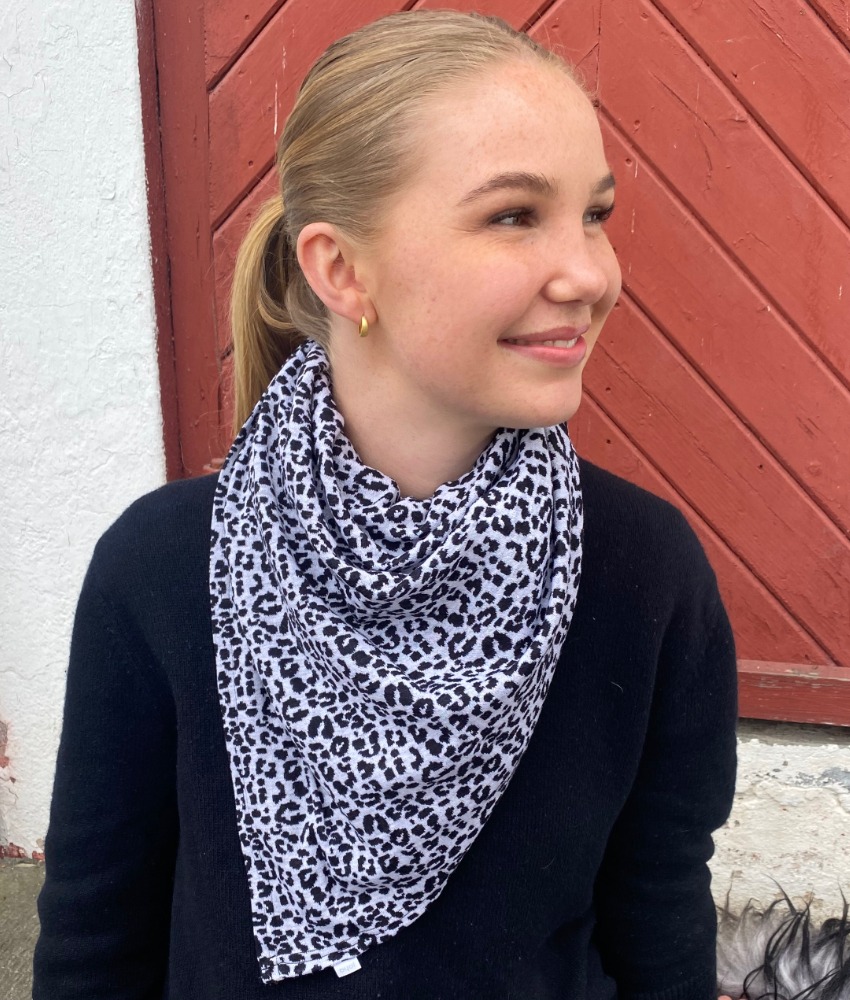 Mykt, stort og varmt trekantskjerf fra danske Joha laget av en tykk og ekstra myk jaquard kvalitet av 100% merinoull. Kult dyremønster i hvitt og sort. Jaquard stoffer er vevet i forskjellige tråder, slik at mønstre og strukturer oppstår i stoffet. Skjerfet måler hele ca 215 cm på langsiden og 150 cm på kortsidene. Trekantformen gjør det praktisk og lett å style på flere ulike måter. Produsert i Europa. Sertifisert med OEKO-TEX® Standard 100 og Woolmark Pure New Wool. Kan maskinvaskes på ullprogram 40°C.