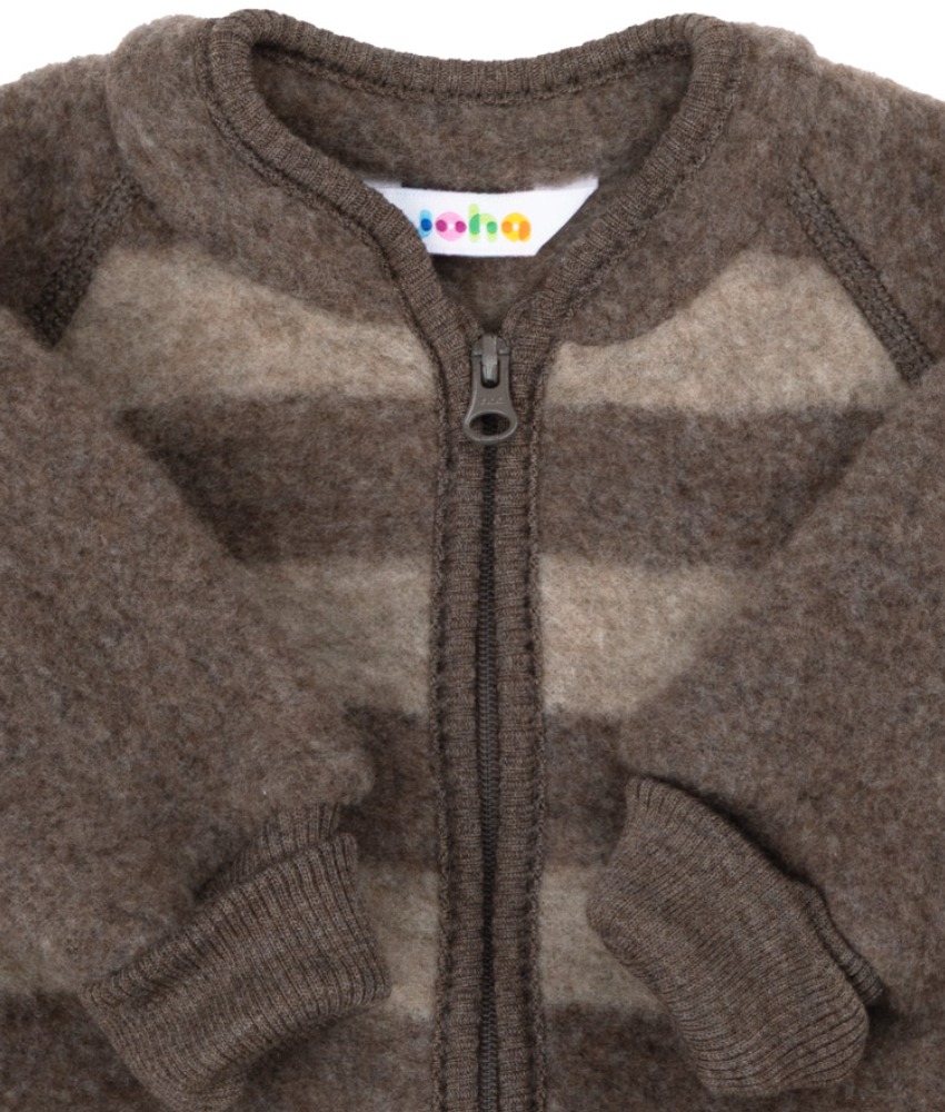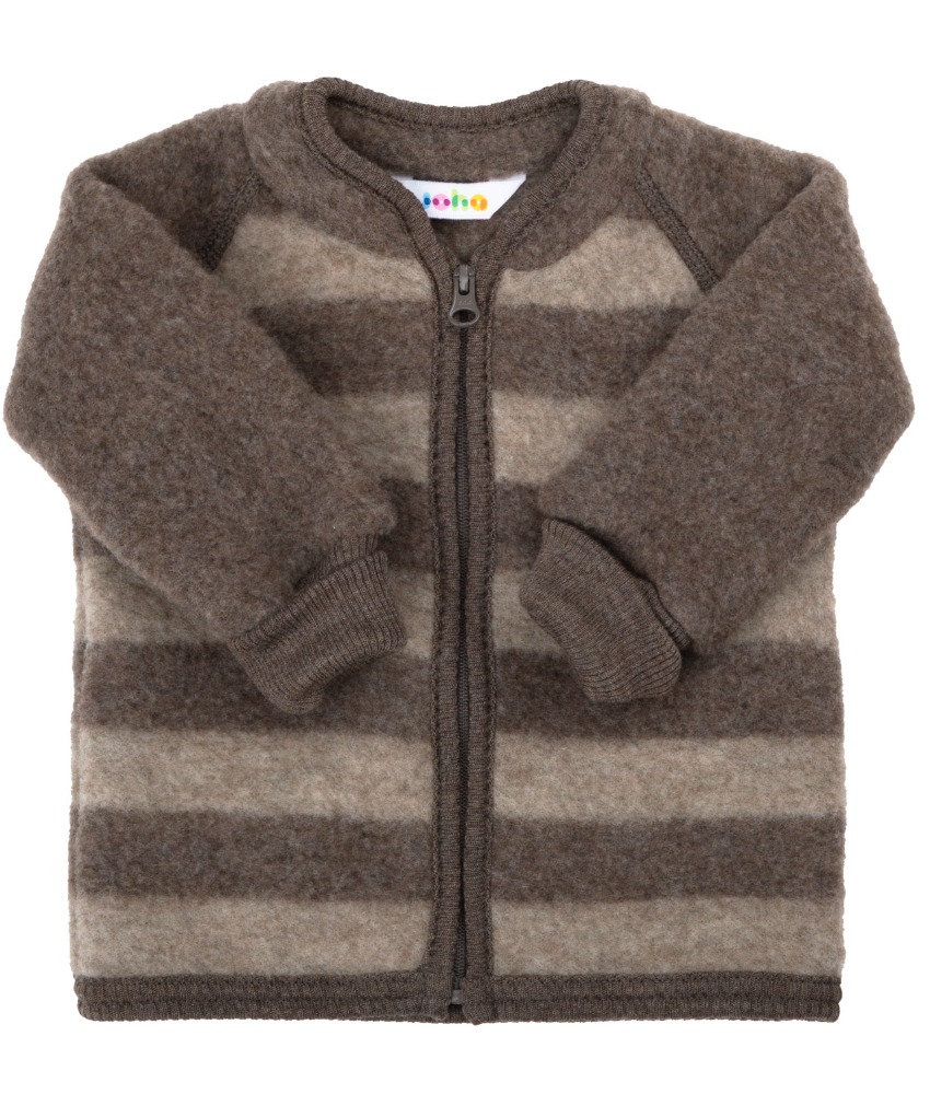 Varm og supermyk jakke fra Joha i 100% merinoull ullfleece. Jakken har praktisk glidelås så den er lett å ta av og på de små. Bred ribbekant på ermene som kan brettes opp/ned så det er litt å vokse i. Vaskes fint i maskin på 30 grader ullprogram med vaskemiddel for ull/silke. Vi anbefaler å vaske den med vrangen ut. Sertifiseringer: OEKO-TEX® Standard 100 & Woolmark Pure Merino Wool.