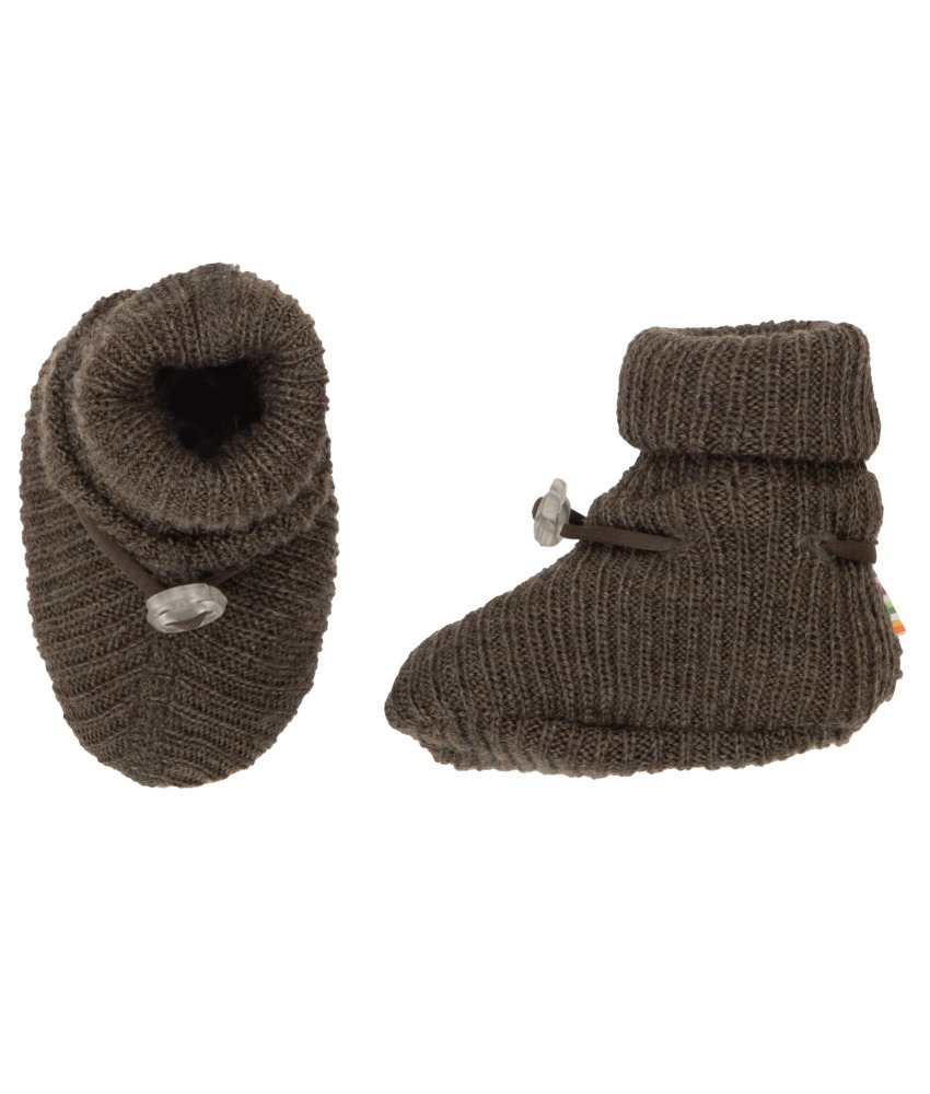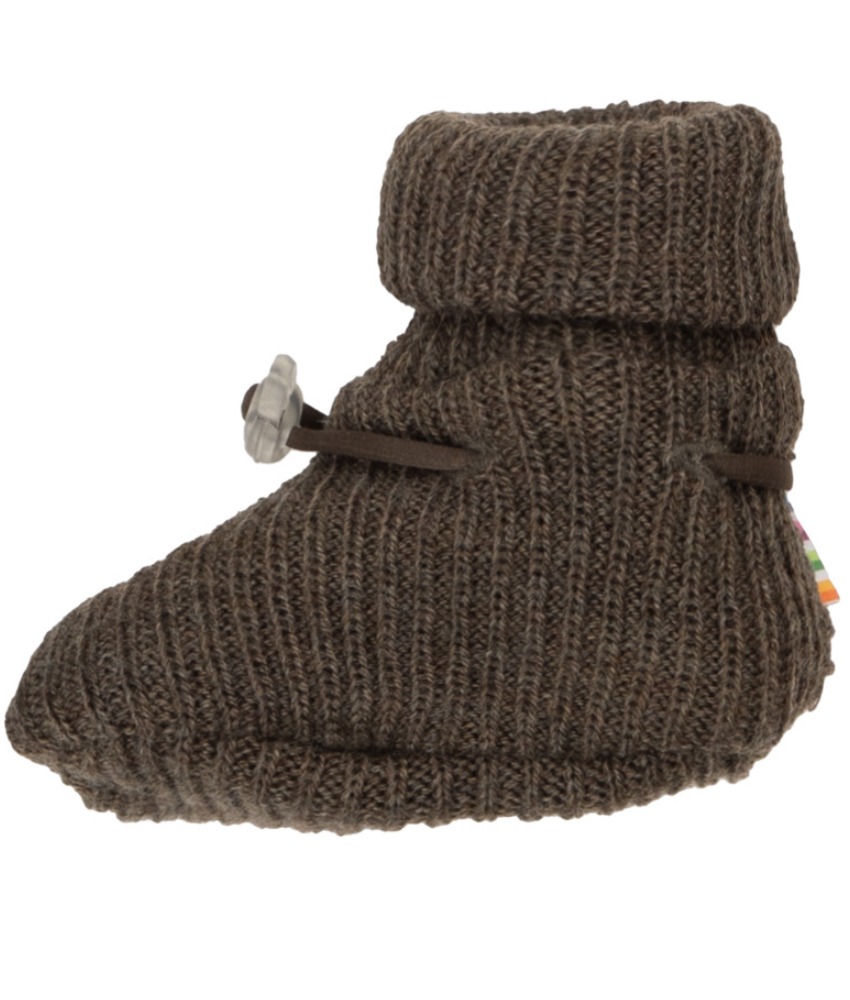 Joha ribbestrikkede babytøfler 100% merinoull Brun Melange