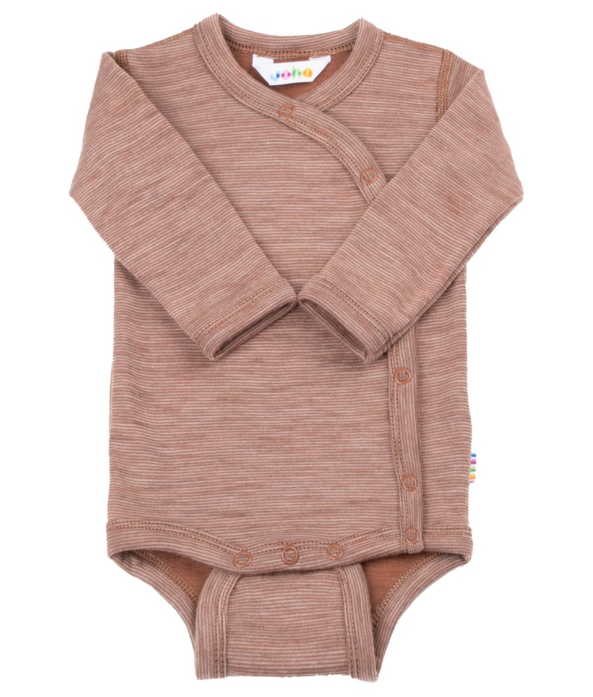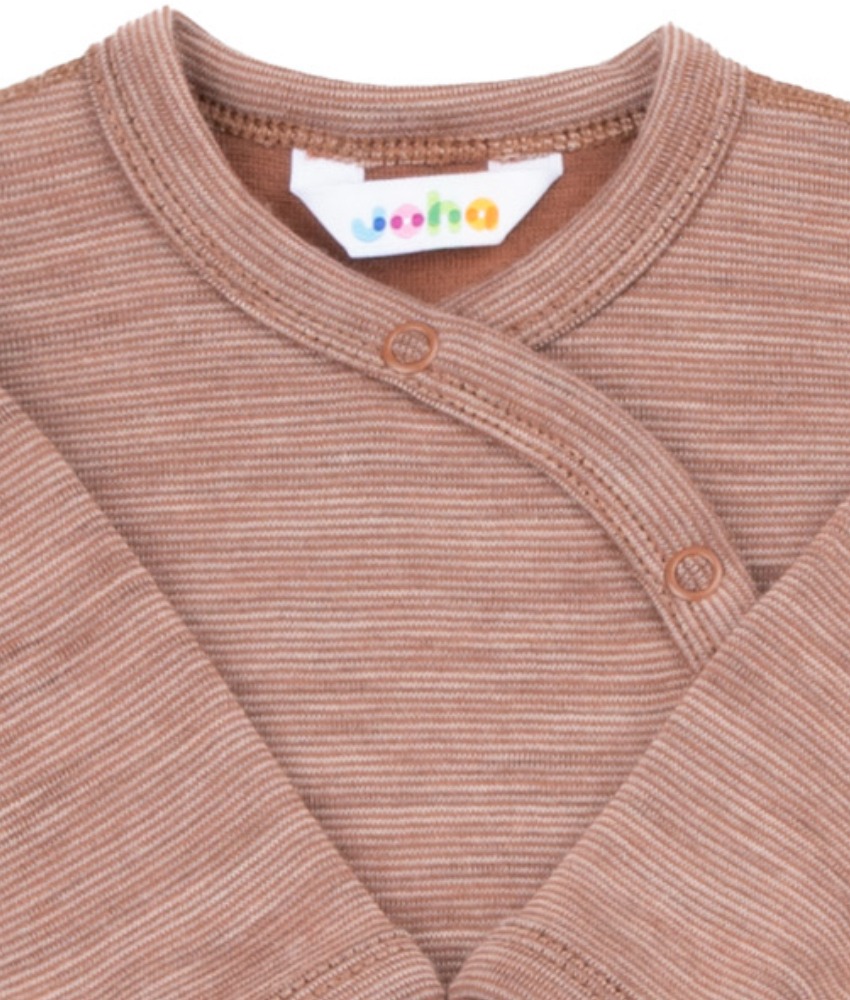 Mykt, varmt og stødig ullsett fra Joha til de aller minste. Denne ullkvaliteten er i en litt tykkere og slitesterk ullkvalitet laget av 95% merinoull og 5% polyamid. Omslagsbody for enkel påkledning hvor du slipper å dra bodyen over hodet og føtter på buksen er praktisk for de aller minste. Sertifisert med OEKO-TEX® Standard 100 og Woolmark Wool Rich Blend.