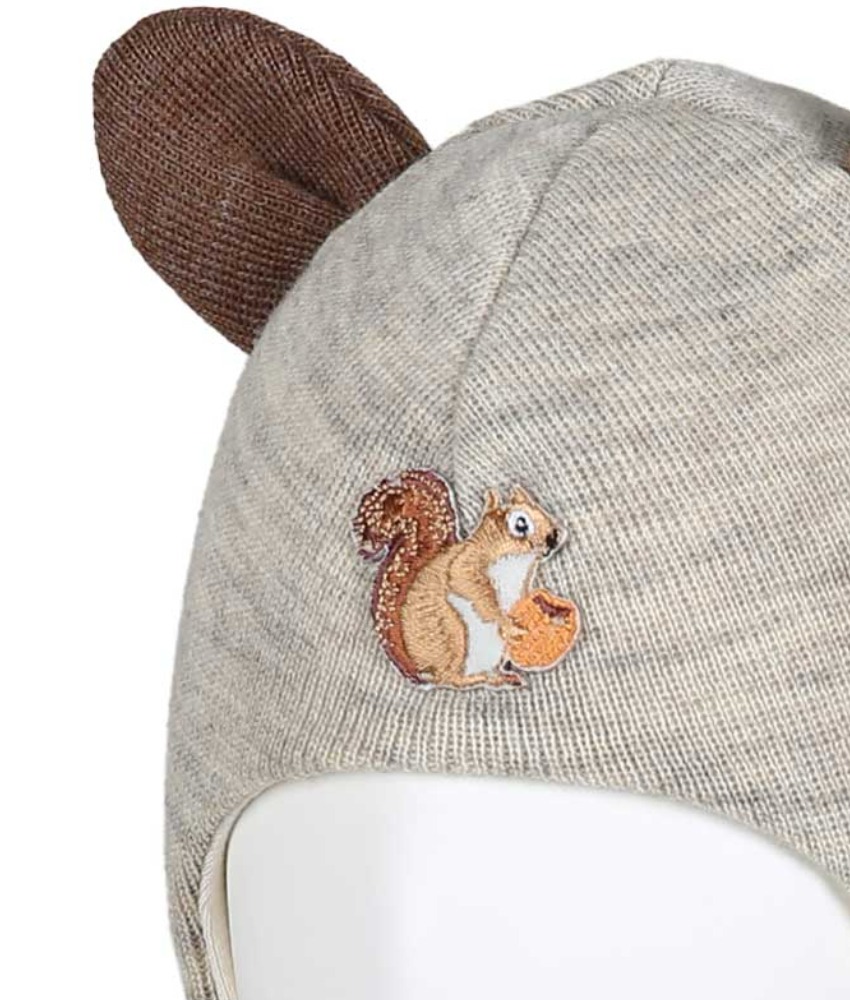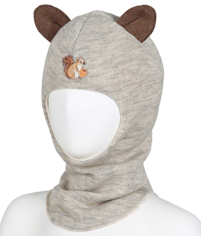 KIVAT foret balaclava i ull ekornører og ekornlogo ufarget Sand