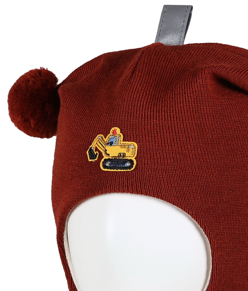 KIVAT foret balaclava i ull med to dusker og gravemaskin Rust