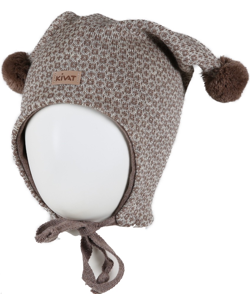 Varm og vindtett knytelue med to dusker og nordisk mønster fra finske Kivat. Luen er strikket i 100% fin ull og foret med GOTS- sertifisert økologisk bomull. Luen har sydd inn ekstra vindstopper foran ørene. Dette er en lue som du kan føle deg trygg på at barnet ikke blir kald i. Luen er slitesterk og kan fint kan gå i arv og varme flere. Laget i Finland.