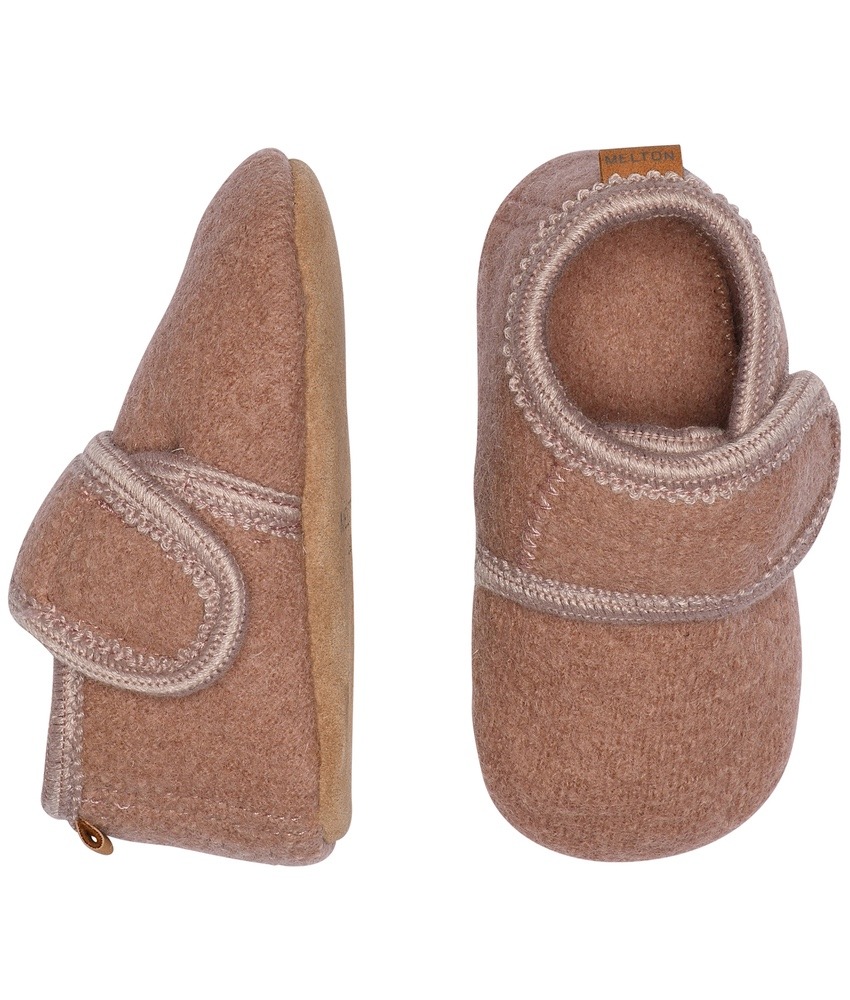 Melton basic ulltøfler med borrelås og skinnsåle Fawn