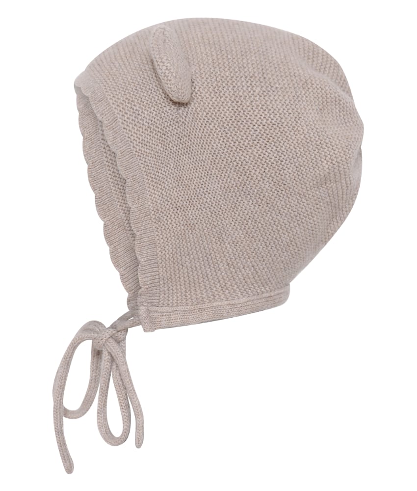 Skjønn babylue fra mp Denmark strikket i en myk ullblanding med merinoull og kashmir. Luen har søte ører og en fin praktisk knyting rundt hodet. Laget av 35% polyamid, 30% merinoull, 30% viskose og 5% kashmir. Sertifiseringer: OEKO-TEX® Standard 100.
