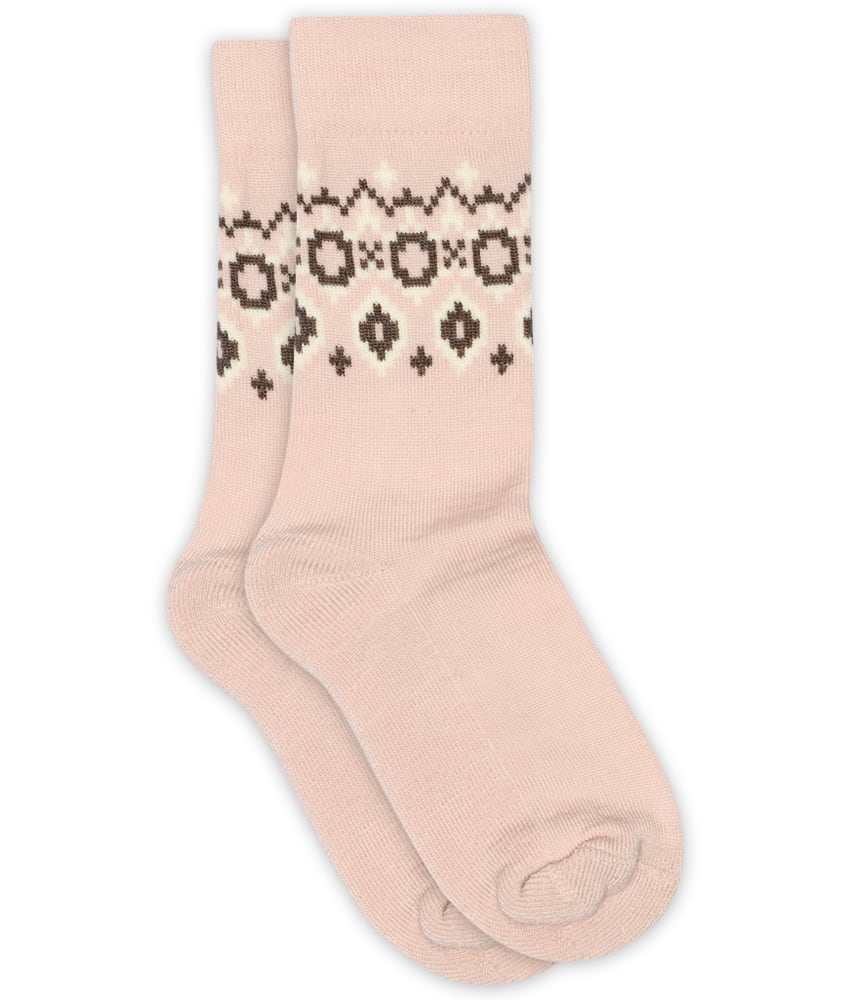 Sokker fra mp Denmark med mønster rundt ankelen. Laget av 80% ull, 17% polyamid og 3% elastan. Vaskes på ullprogram i vaskemaskinen med vaskemiddel for ull/silke. Det anbefales å vaske sokkene på vrangen, så holder de seg fine lengre. Sertifisert med Standard 100 fra OEKO-TEX®.