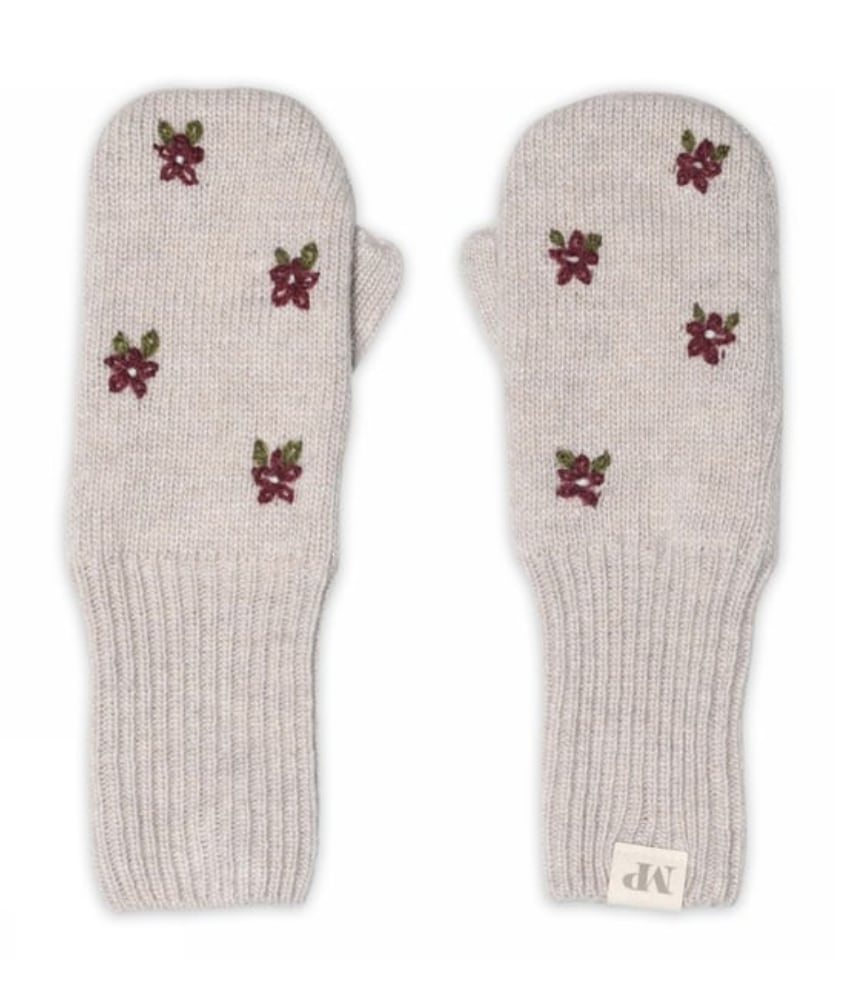 Søte votter fra mp Denmark med blomster. Vottene er laget i en myk blanding av 35% polyamid, 30% viskose, 30% merinoull og 5% kashmir.