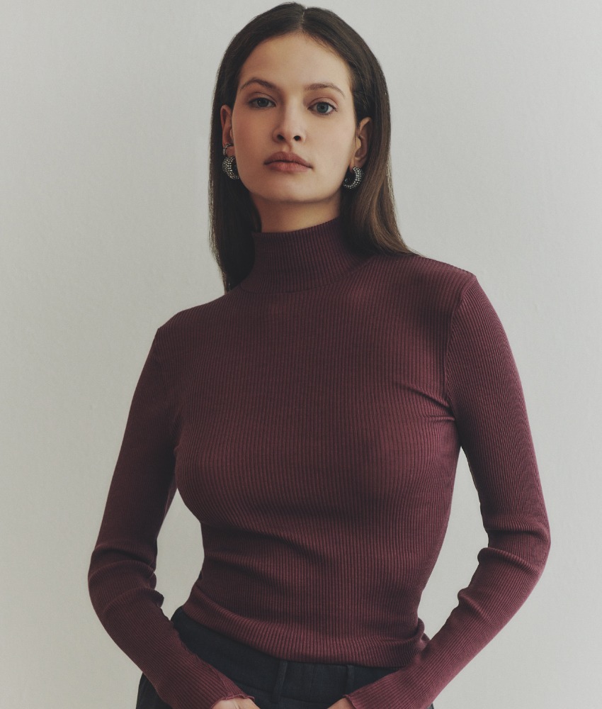 Fantastisk myk genser i en nydelig stretchy ribb kvalitet fra Italienske Oscalito med enkel høy hals. Laget av 70% extra fine merinoull (18,5 mikron) og 30% ren ny mulberry silke av toppkvalitet. Ullen de bruker er mulesing fri og silken er GOTS-serifisert.
